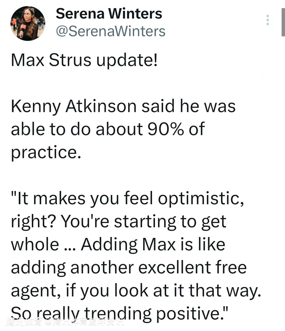 阿特金森说道:“这当然会让人感到乐观,对吧?球队开始逐渐恢复完整阵容了……这么说吧,斯特鲁斯的回归就好比我们又签下了一名非常出色的自由球员。所以目前情况确实在往好的方向发展。”